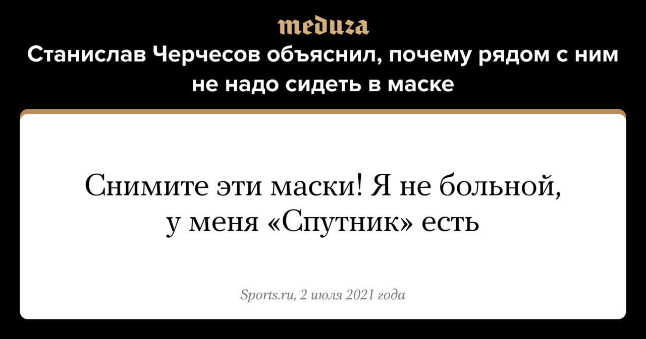 Вечерняя Медуза В Москве всех больных ОРВИ приравняли к пациентам с ковидом. Мэр Коломны покончил с собой. Как «Вышка» прощается со своим первым ректором Добрый вечер, ДАННОЕ СООБЩЕНИЕ (МАТЕРИАЛ) СОЗДАНО И (ИЛИ) РАСПРОСТРАНЕНО ИНОСТРАННЫМ СРЕДСТВОМ МАССОВОЙ ИНФОРМАЦИИ, ВЫПОЛНЯЮЩИМ ФУНКЦИИ ИНОСТРАННОГО АГЕНТА, И (ИЛИ) РОССИЙСКИМ ЮРИДИЧЕСКИМ ЛИЦОМ, ВЫПОЛНЯЮЩИМ ФУНКЦИИ ИНОСТРАННОГО АГЕНТА это ежедневная рассылка «Медузы» о важных новостях дня. Признавайтесь: как вам ДАННОЕ СООБЩЕНИЕ выше? Уже привыкли? Все еще бесит? В общем, теперь можно раздражать (или радовать) этим дисклеймером окружающих во время походов за покупками — с помощью вместительной и удобной сумки-шопера от Friend Function. А 20% от продажи каждой сумки пойдут на поддержку «Медузы».❤️ Подпишитесь на нашу рассылку и делитесь ссылкой в соцсетях или мессенджере. Пульс Главное за день — по пунктам - В Москве с сегодняшнего дня все пациенты с ОРВИ будут рассматриваться как больные коронавирусом. Их обязали соблюдать изоляцию до получения отрицательного теста.