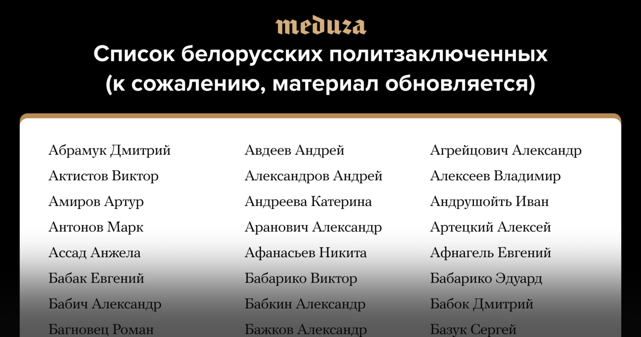 Вечерняя Медуза Как начавшиеся год назад протесты изменили Беларусь. Может ли появиться штамм ковида, от которого не защитят вакцины. Спортсмены стали ценить здоровье выше титулов Добрый вечер, ДАННОЕ СООБЩЕНИЕ (МАТЕРИАЛ) СОЗДАНО И (ИЛИ) РАСПРОСТРАНЕНО ИНОСТРАННЫМ СРЕДСТВОМ МАССОВОЙ ИНФОРМАЦИИ, ВЫПОЛНЯЮЩИМ ФУНКЦИИ ИНОСТРАННОГО АГЕНТА, И (ИЛИ) РОССИЙСКИМ ЮРИДИЧЕСКИМ ЛИЦОМ, ВЫПОЛНЯЮЩИМ ФУНКЦИИ ИНОСТРАННОГО АГЕНТА это ежедневная рассылка «Медузы» о важных новостях дня. А по понедельникам еще и о том, что случилось за выходные. Начнем с долгожданной и очень приятной новости: певица МакSим, которая больше месяца находилась на аппарате искусственной вентиляции легких, выздоравливает! Она написала пост в инстаграме, в котором поблагодарила всех за поддержку и рассказала, что 9 августа ее собираются перевести из реанимации в обычную больничную палату. Как же мы рады! Подпишитесь на нашу рассылку и делитесь ссылкой в соцсетях или мессенджере. Пульс Главное — по пунктам Тема дня Ровно год назад в Беларуси начались массовые протесты. Прошедший год изменил страну 9 августа 2020 года в Беларуси прошли президентские выборы. По официальным данным, они закончились победой Александра Лукашенко, который якобы набрал больше 80% голосов. За оглашением результатов последовали беспрецедентные по масштабу акции протеста, а за ними развернулись масштабные репрессии, которые продолжаются до сих пор. Сегодня на «Медузе» вышло сразу несколько материалов к годовщине белорусских протестов: - Мы постарались максимально коротко описать прошедший год. Сразу признаемся: коротко не получилось.
